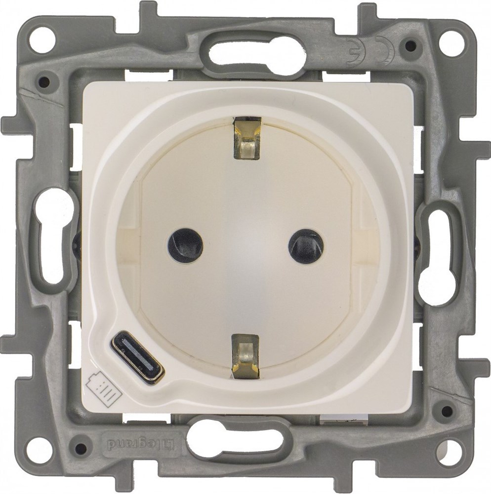 Legrand Etika белый розетка с заземлением, со шт. 16А 250В с USB тип C 1500мА 7,5Вт безвинтовые зажимы 672288