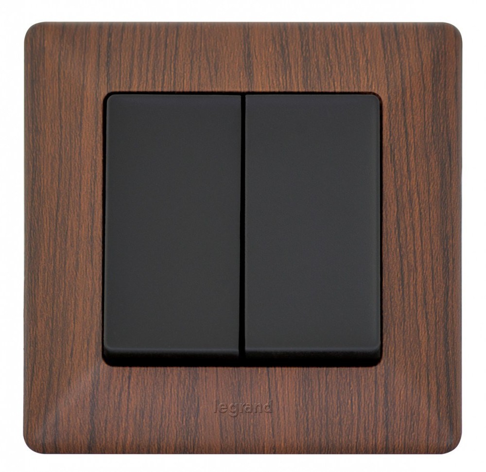 Legrand Valena Life Black выключатель двухклавишный 10А 250В с лицевой панелью. Безвинтовые зажимы, антрацит. 756305