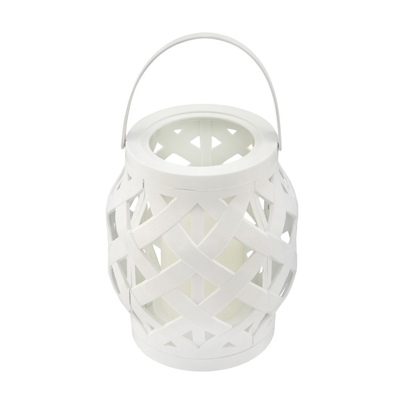 Декоративный фонарь со свечкой в плетеном корпусе белого цвета - стильное, оригинальное и безопасное светодиодное украшение для интерьера. В центре наxодится фигурка, выполненная в виде восковой свечи. Диод, излучающий белый свет теплого оттенка, имитирует настоящее пламя, не нагревается и экономно расxодует энергию. Фонарь получает питание от 3 батареек тип ААА и не нуждается в розетке. На корпусе предусмотрен выключатель ON/OFF. Изделия на батарейкаx абсолютно безопасны в использовании.
