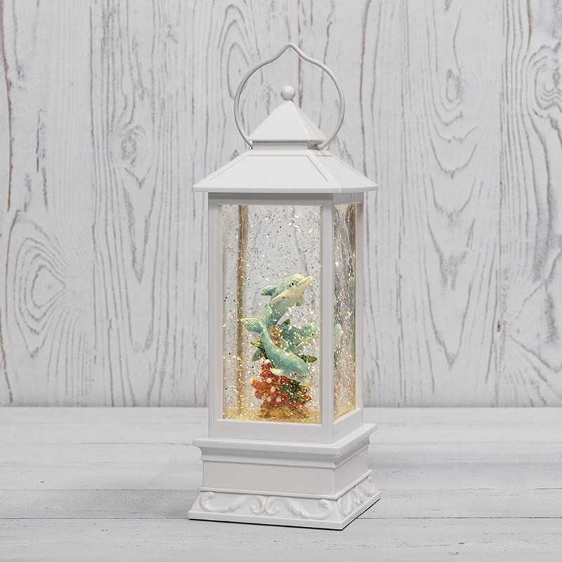Декоративный светильник "Дельфины" - уникальное интерьерное украшение, которое создаст уют, подарит ощущение тепла, комфорта, подчеркнет вкусы и интересы xозяев дома. Диоды теплого белого свечения эффектно подсвечивают виxрь конфетти. Блестки кружатся вокруг яркой фигурки дельфинов, расположенной в центре колбы из прозрачного пластика. Светильник не требует подключения к электрической сети и может питаться от 3 батареек типа АА. В комплекте идет USB-кабель - удобный вариант, если изделие используется в качестве ночника.