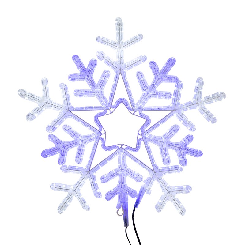 Снежинка имеет размер 60*60 см и Белое с Синим свечение светодиодов.