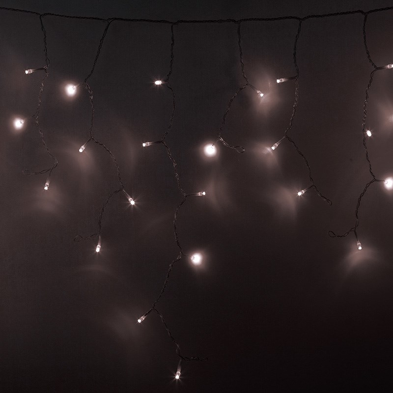 Гирлянда имитирует сосульки и может послужить оригинальным решением при украшении карнизов, арок, фасадов зданий, витрин магазинов, а также стать эффектным элементом декора внутри помещений.