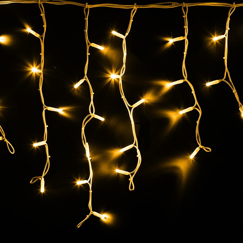 Данная гирлянда имеет желтый цвет свечения и предназначена для размещения как внутри помещений, так и снаружи.