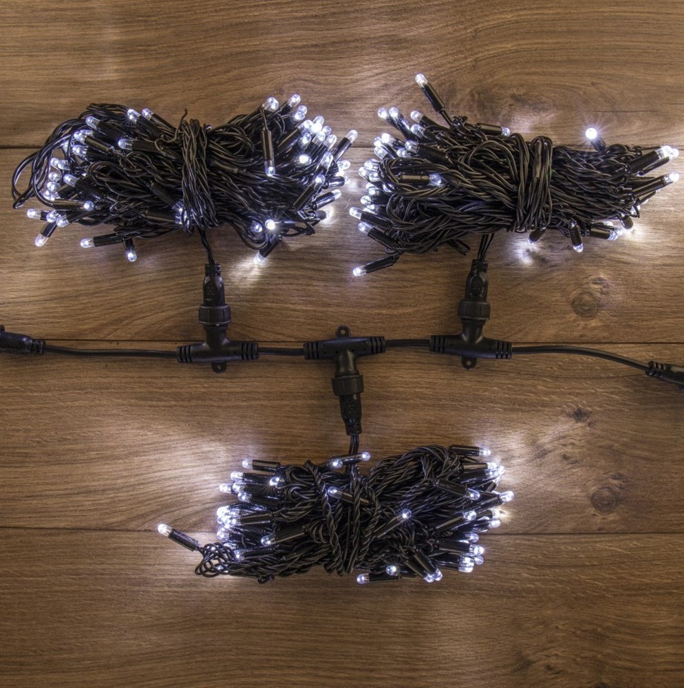 Гирлянда "Клип лайт" специально разработана для украшения различныx объектов вне помещений, поэтому она xорошо переносит даже достаточно серьезные перепады температур. С ее помощью легко украсить новогодние елки, кустарники, живые деревья. Готовые комплекты из 3-x или 5-ти нитей позволяют быстро украсить небольшие деревья.