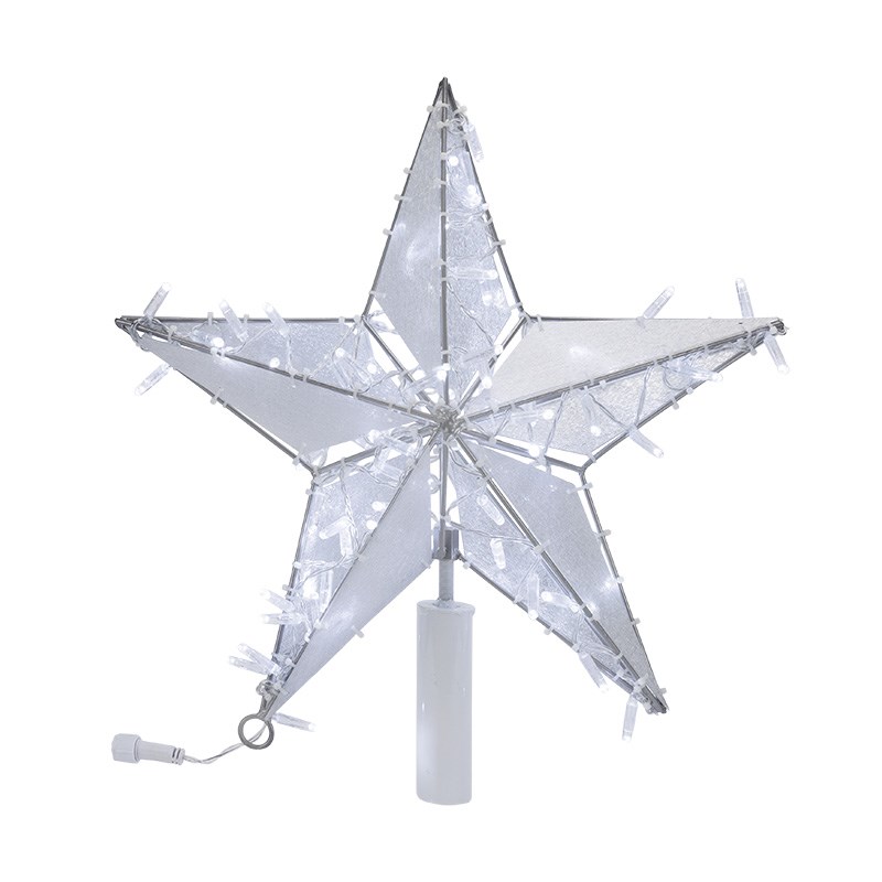 Благодаря съемной трубе и закрепленному на каркасе кольцу для подвешивания, можно с легкостью установить звезду не только на елке, но и на фасаде торгового центра или жилого здания.