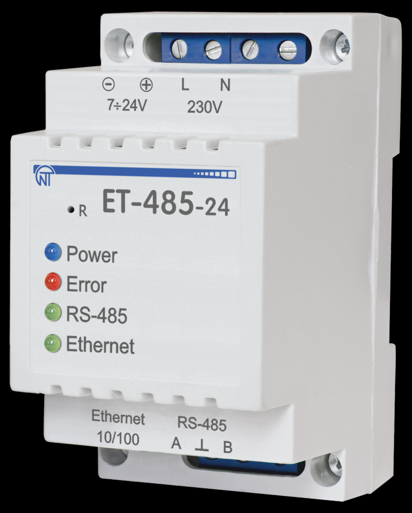 Новатек Преобразователь интерфейсов ЕТ-485 220В, Modbus RTU/ASCII (RS-485)–Modbus TCP (Ethernet) 3425680485 24