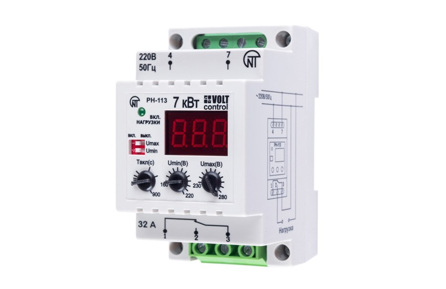Новатек Реле контроля 1-фаз. напряжения РН-113 (3мод.), 32А АС1 РН-113