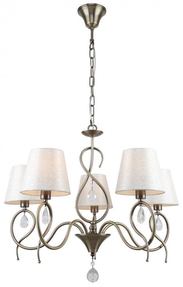 Rivoli Beatrix (арт. 2067-305) – металлическая люстра потолочная подвесная с хрустальным декором. Люстры Beatrix итальянского бренда Rivoli выполнены в классическом стиле из материалов высокого качества. Данная люстра подвесная используется с 5 лампами Е14 40 Вт. В коллекции есть также подвесная люстра под 7 ламп – арт. 2067-307. А ещё классическое бра – арт. 2067-401. 7 хрустальных подвесок украшают классическую люстру Rivoli Beatrix, корпус которой окрашен в цвет античная бронза. 5 тканевых плафонов белого цвета имеют традиционную форму. Подвес декорирован цепочкой, высоту подвешивания люстры можно отрегулировать при монтаже люстры на потолок. Специальная абажурная ткань немаркая, она сохранит свой цвет и чистоту на долгое время.