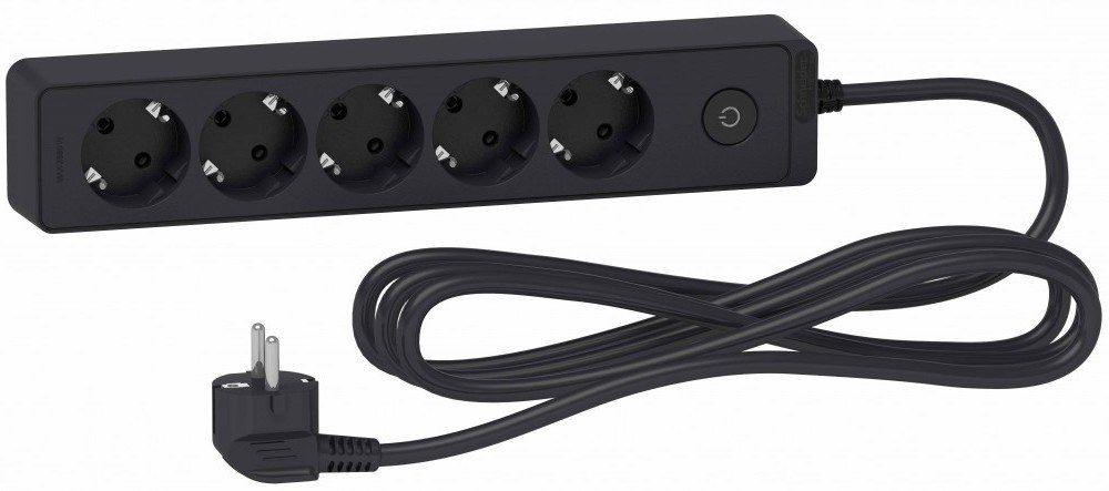 Schneider Electric Unica Extend Черный Удлинитель 5 розеток 2К+З, кабель 3м ST9453B