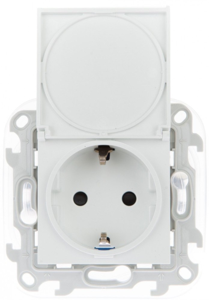 Simon 24 Белая Розетка 2К+3 IP44 с крышкой и защитными шторками Push&Go 2420448-030