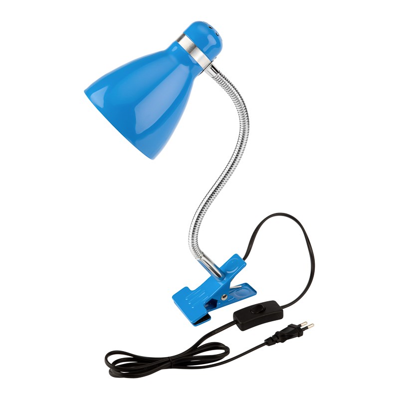Светильник настольный Моби на металлической стойке с зажимом-прищепкой, с цоколем Е27, 60 Вт, цвет летнее небо Rexant 603-1013