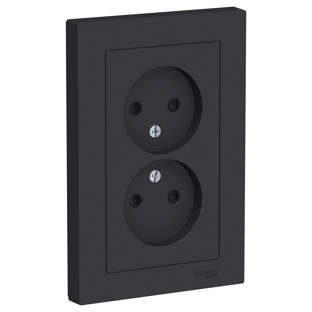 Розетка двойная Systeme Electric (ранее Schneider Electric) серии AtlasDesign (в сборе, цвет карбон) без заземления со шторками подходит для сетей 250 В, на ток 16 А. - Лицевые детали из качественного ABS-пластика, устойчивого к царапинам и УФ-излучению. - Двойная розетка позволяет подключить два устройства в одном месте. - Изделие поставляется в комплекте с рамкой того же цвета. - Благодаря покрытию «soft touch» к изделию приятно прикасаться.