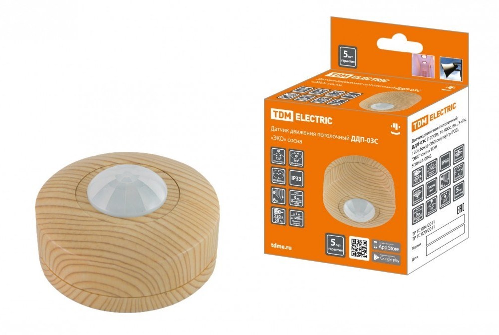 TDM Датчик движения потол. ДДП-03С (1200Вт, 10-900с, 6м , 3+Лк, 120(сб)+360(св)гр IP33), "ЭКО" сосна SQ0324-0043