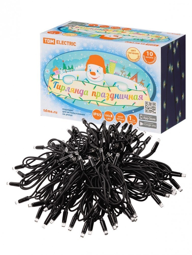 TDM Гирлянда светодиодная СГУ100БТ10, 10м, 3000К, каучук чер., посл. подкл, IP65, 250 В, SQ0361-0042