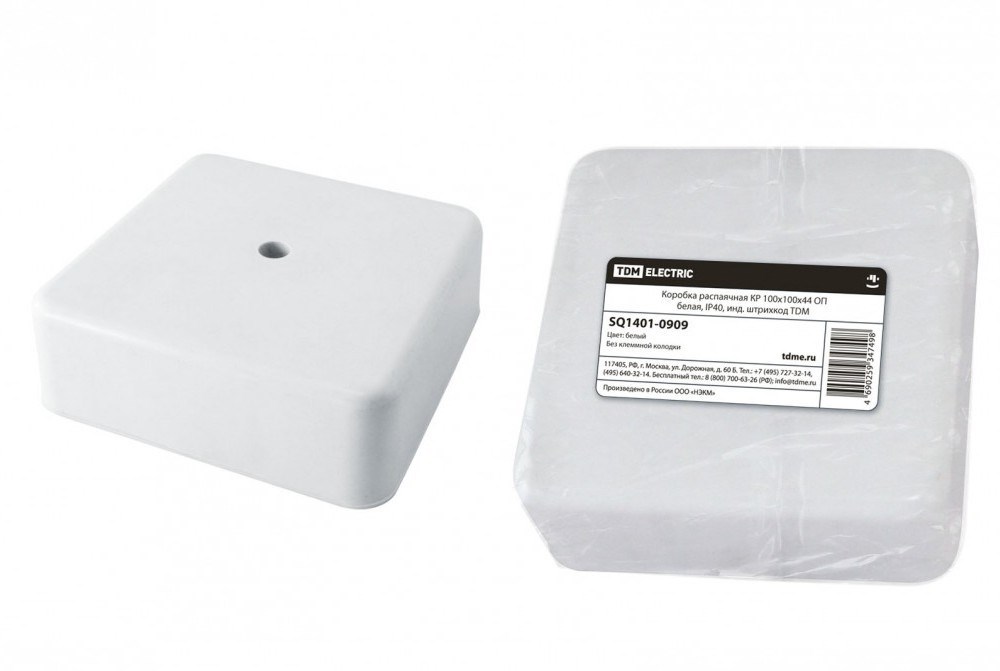 TDM Коробка распаячная КР 100х100х44 ОП белая, IP40, инд. штрихкод SQ1401-0909