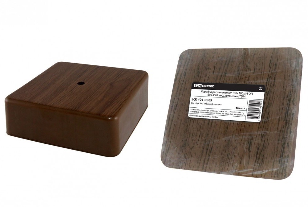 Материалы:ПС (полистирол) Преимущества:Коробки имеют современный дизайн, отвечают требованиям стандартов безопасности.Расцветка, имитирующая цвет дерева, для создания привлекательного интерьера. Могут использоваться как отдельно, так и в системе с кабель-каналами и гофротрубами из ПВХ аналогичного цвета.Назначение:Предназначены для разветвления проводов и кабелей, для крепления на стены, потолки и защиты от механических повреждений мест соединения проводов и кабелей.Используются как часть системы электрической канализации, состоящей из кабель-канала и гофрированных труб. Упаковка:Термоусадочная пленка Конструкция:На внутренней стороне крышки нанесены специальные риски для вырезов под провод, кабель-канал или кабель.Клеммники внутри коробки позволяют надежно зажимать проводники сечением от 1,5 до 6 мм.