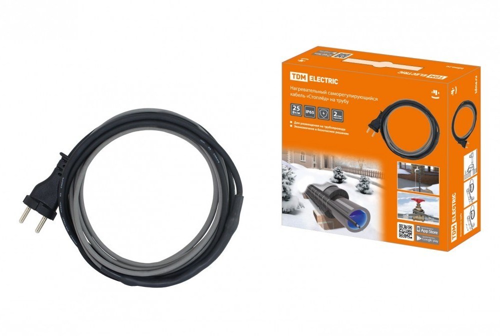 TDM Нагревательный саморегулирующийся кабель Стоплёд" НСК25-Н с вилкой, на трубу (25м/400Вт)" SQ2510-0008