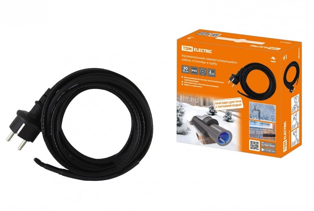 TDM Нагревательный саморегулирующийся кабель Стоплёд" НСК30-В с вилкой, в трубу (30м/300Вт)" SQ2510-0019