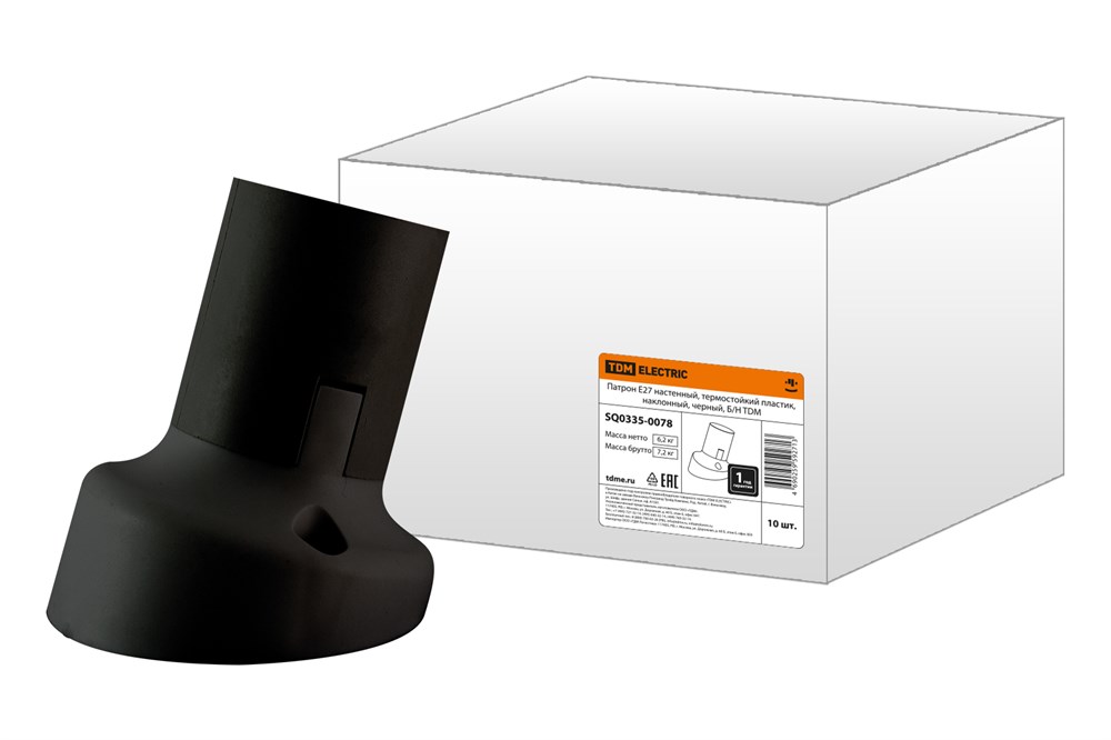 TDM Патрон Е27 настенный, термостойкий пластик, наклонный, черный, Б/Н SQ0335-0078