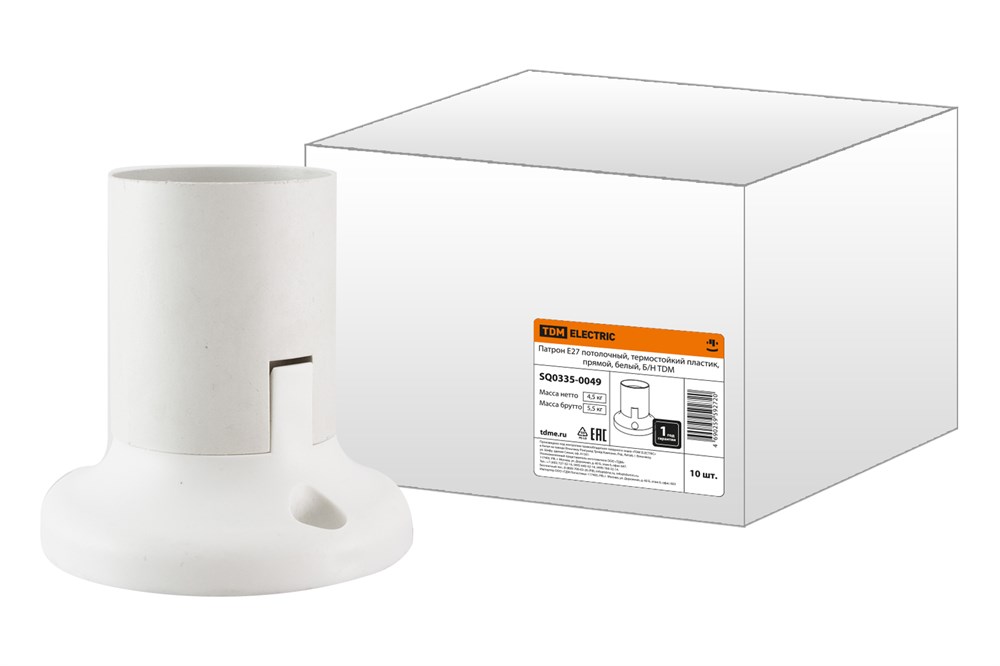 TDM Патрон Е27 потолочный, термостойкий пластик, прямой, белый, Б/Н SQ0335-0049