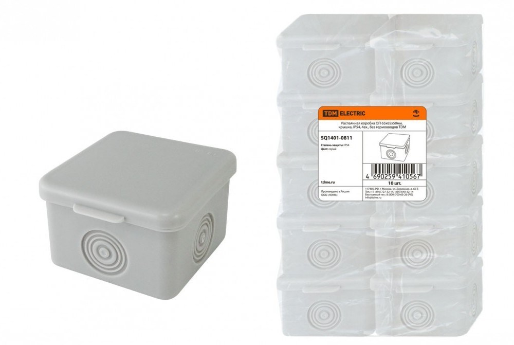 TDM Распаячная коробка ОП 65х65х50мм, крышка, IP54, 4вх., без гермовводов SQ1401-0811