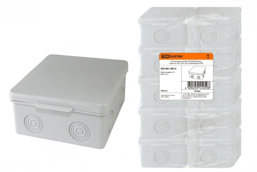 TDM Распаячная коробка ОП 80х80х50мм, крышка, IP54, 7вх., без гермовводов SQ1401-0812