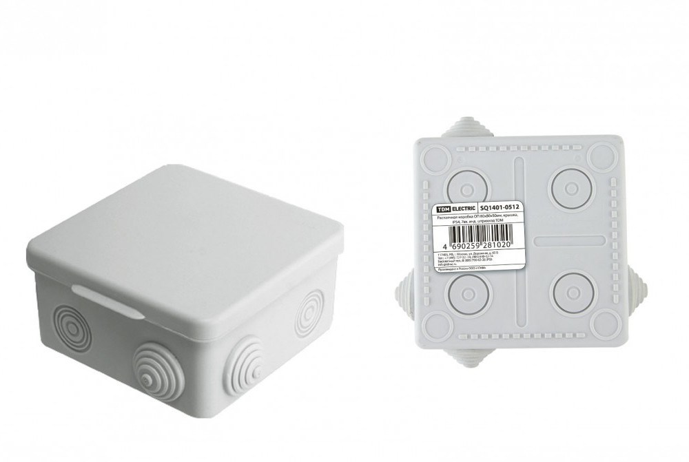 TDM Распаячная коробка ОП 80х80х50мм, крышка, IP54, 7вх. инд. штрихкод SQ1401-0512