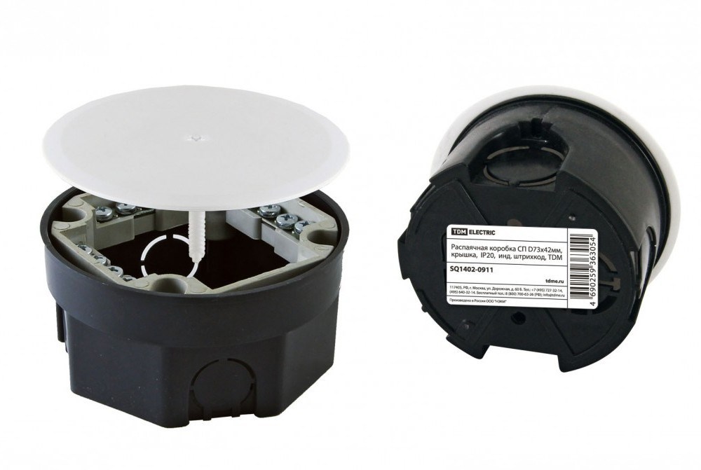 TDM Распаячная коробка СП D73х42мм, крышка, IP20, инд. штрихкод, SQ1402-0911
