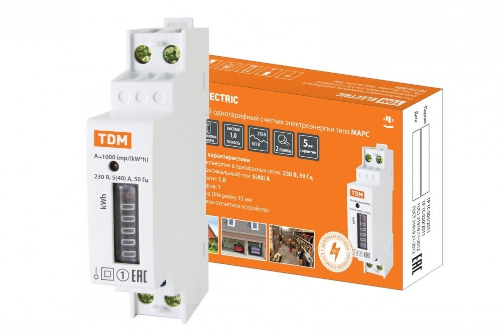 TDM Счетчик без поверки МАРС-б/п-1,0-11-Р1-5(40)-М (1ф, 1тар, din-рейка, 1мод, мех.ОУ) SQ1105-0020