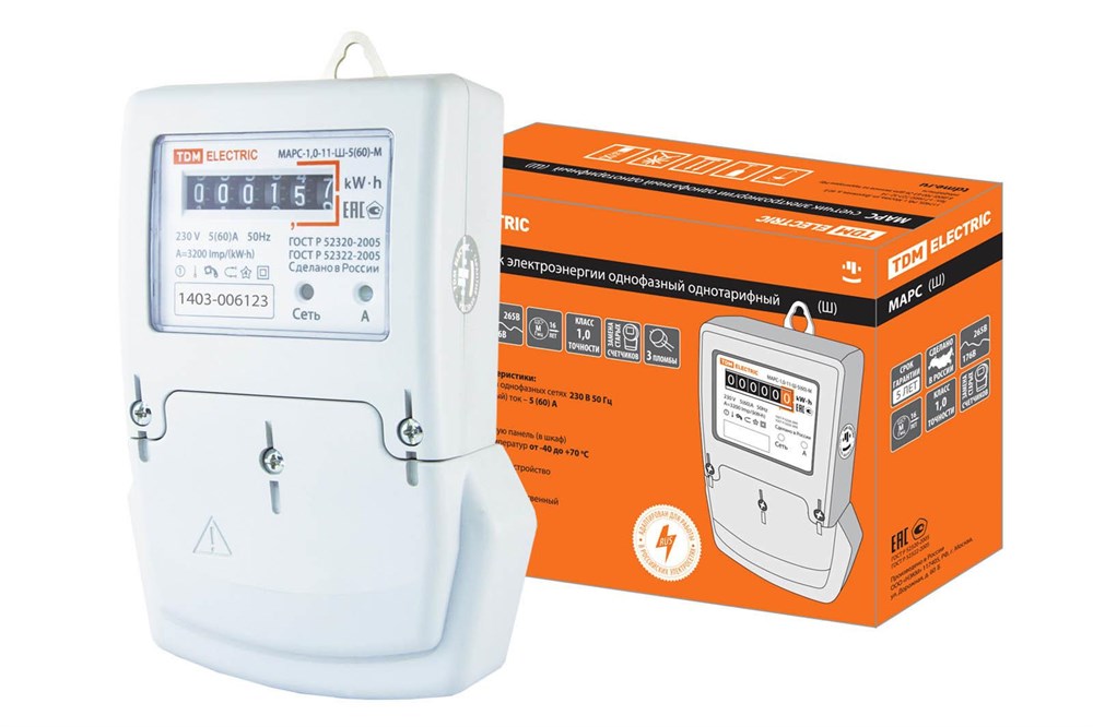 TDM Счетчик без поверки МАРС-б/п -1,0-11-Ш-10(100)-М (1ф, 1тар, монт.панель, мех.ОУ) SQ1105-0029