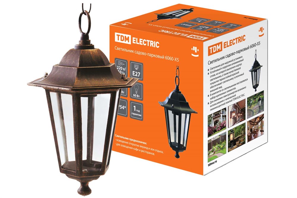 TDM Светильник 6060-15 садово-парковый шестигранник, 60Вт, подвес, бронза SQ0330-0015