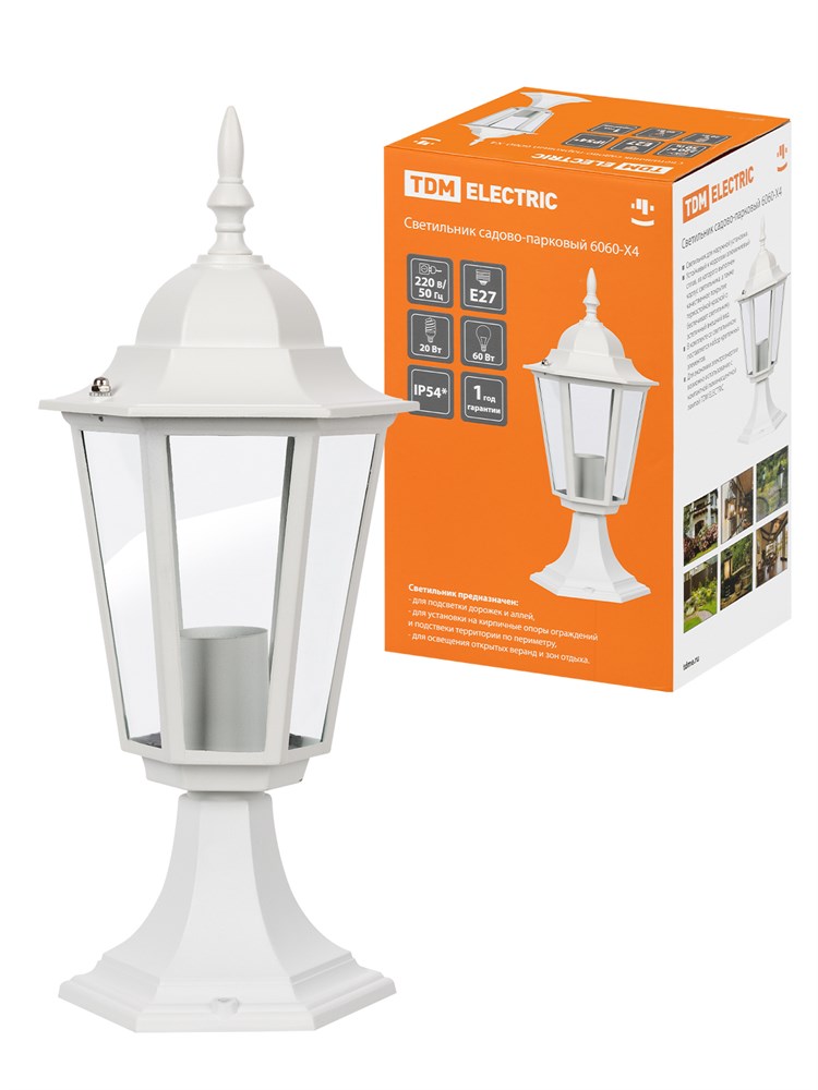 TDM Светильник 6060-24 садово-парковый шестигранник, 60Вт, стойка, белый SQ0330-0064