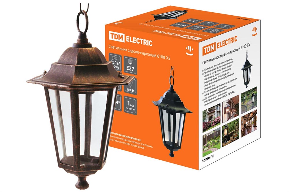 TDM Светильник 6100-15 садово-парковый шестигранник, 100Вт, подвес, бронза SQ0330-0020