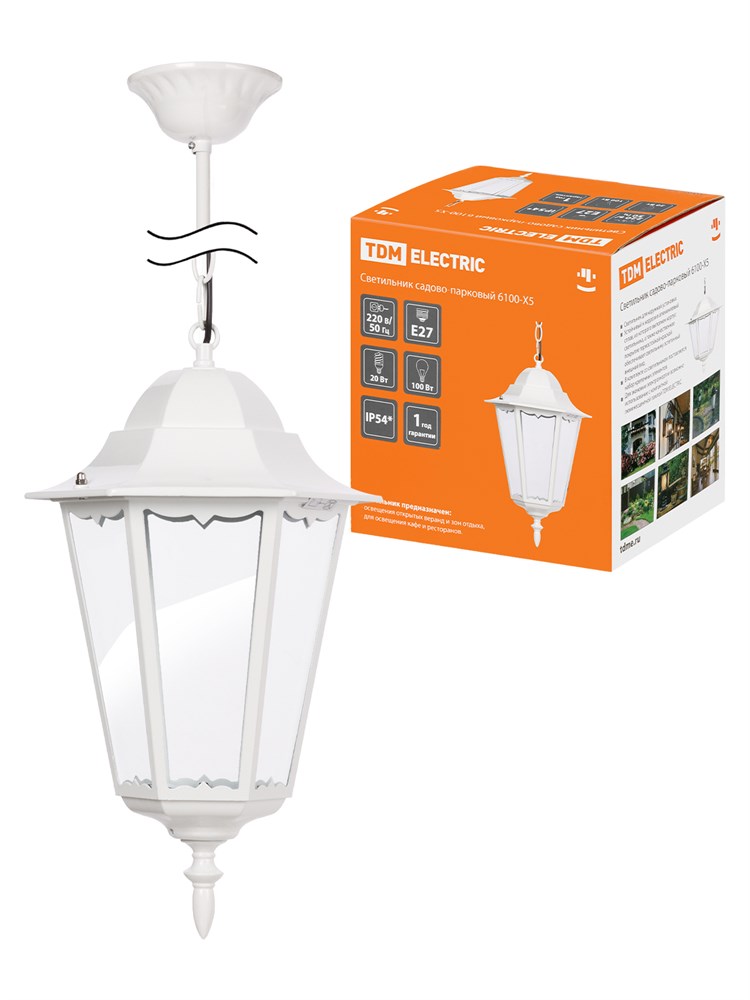 TDM Светильник 6100-25 садово-парковый шестигранник, 100Вт, подвес,белый SQ0330-0070
