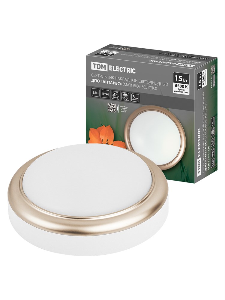 TDM Светильник накладной LED ДПО "Антарес" 15Вт 6500К круг 180*66 мм мат.золото IP54 SQ0354-0026