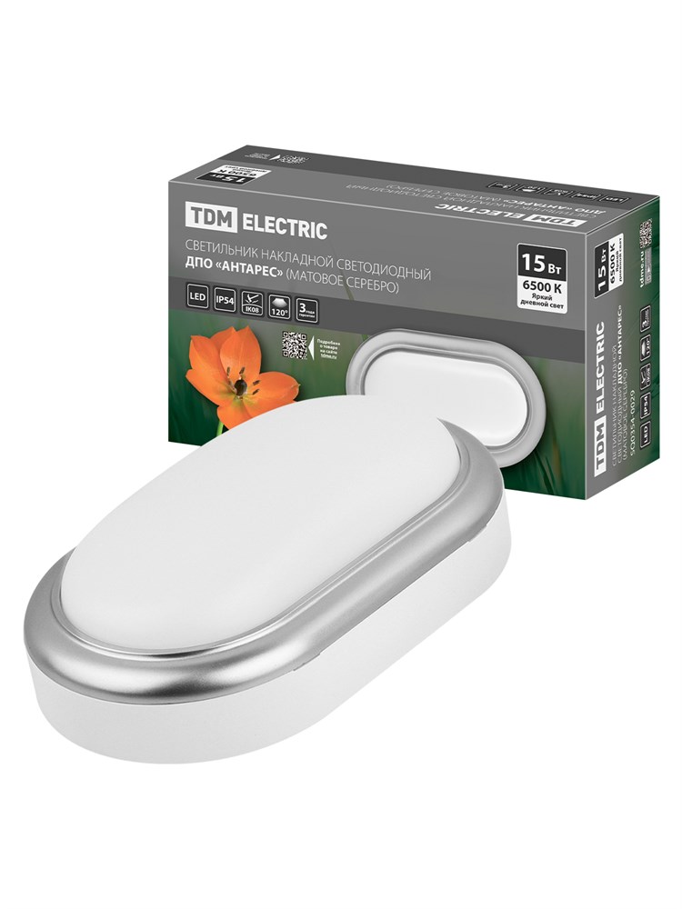 TDM Светильник накладной LED ДПО "Антарес" 15Вт 6500К овал 221*131*68 мм мат.серебро IP54 SQ0354-0029