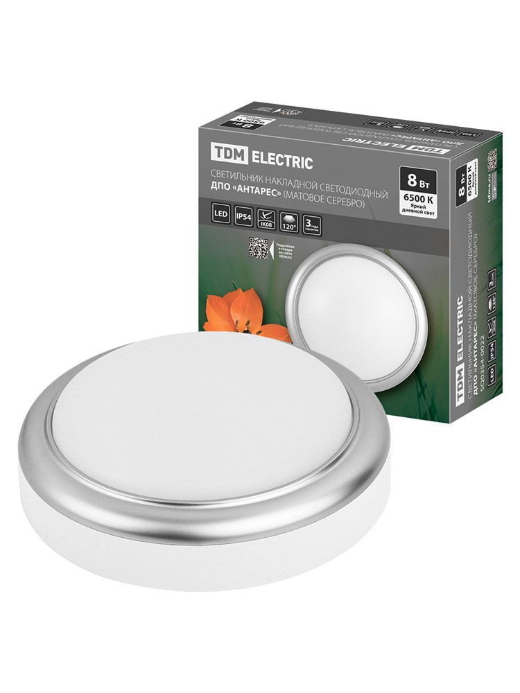 TDM Светильник накладной LED ДПО "Антарес" 8Вт 6500К круг 140*58 мм мат.серебро IP54 SQ0354-0022
