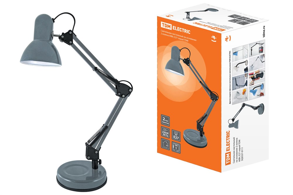 TDM Светильник настольный на основании 2 колена 60Вт, E27 серый SQ0337-0111