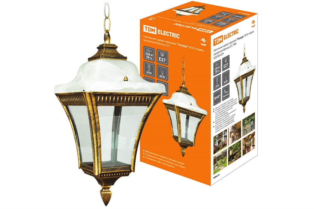 TDM Светильник садово-парковый "Глазурь" 60 Вт, подвес, прозрачное/бронза, Е27 SQ0330-0329