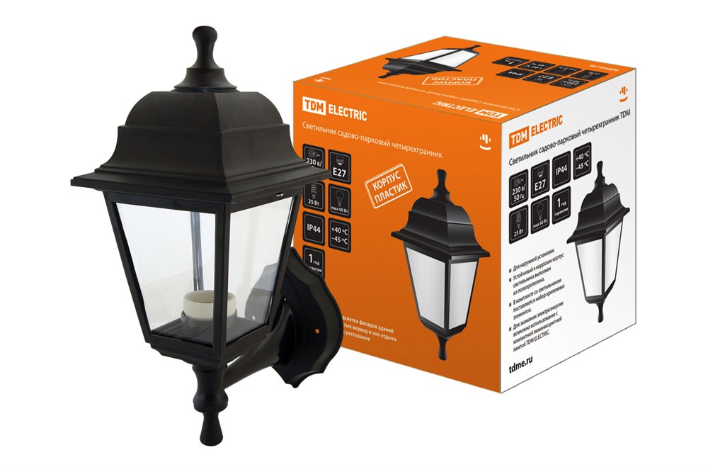 TDM Светильник садово-парковый НБУ 04-60-001 четырехгранник, настенный, пластик, черный SQ0330-0704