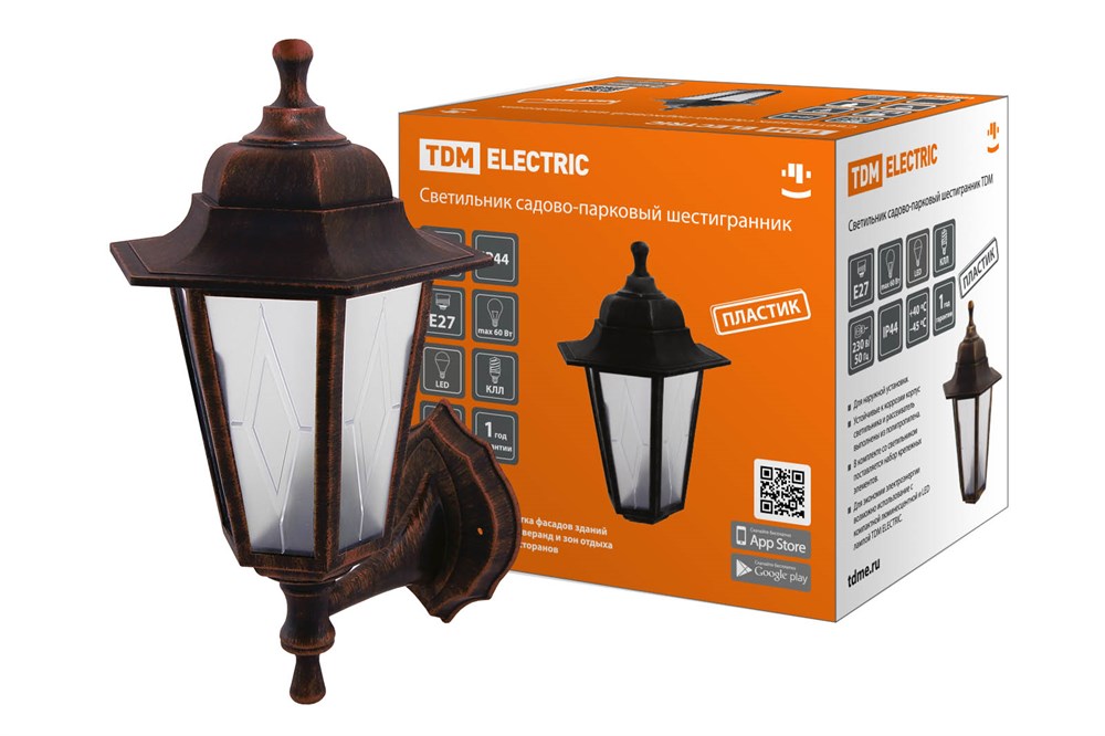 TDM Светильник садово-парковый НБУ 06-60-001 шестигр., настенный, пластик, расс.пластик, медь SQ0330-0781