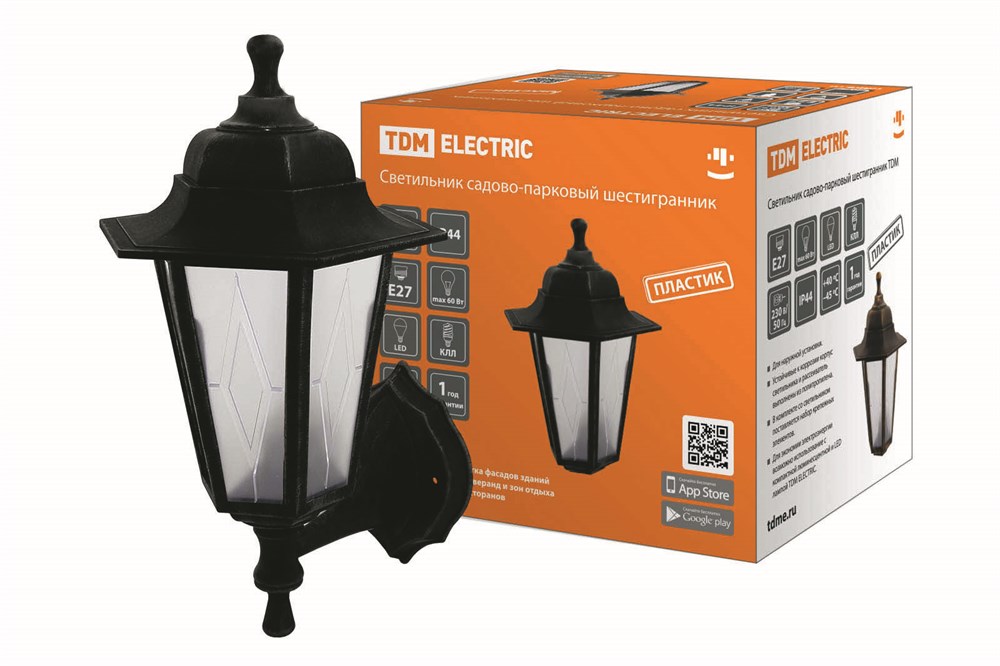 TDM Светильник садово-парковый НБУ 06-60-001 шестигранник, настенный, пластик, расс.пластик, черный SQ0330-0761