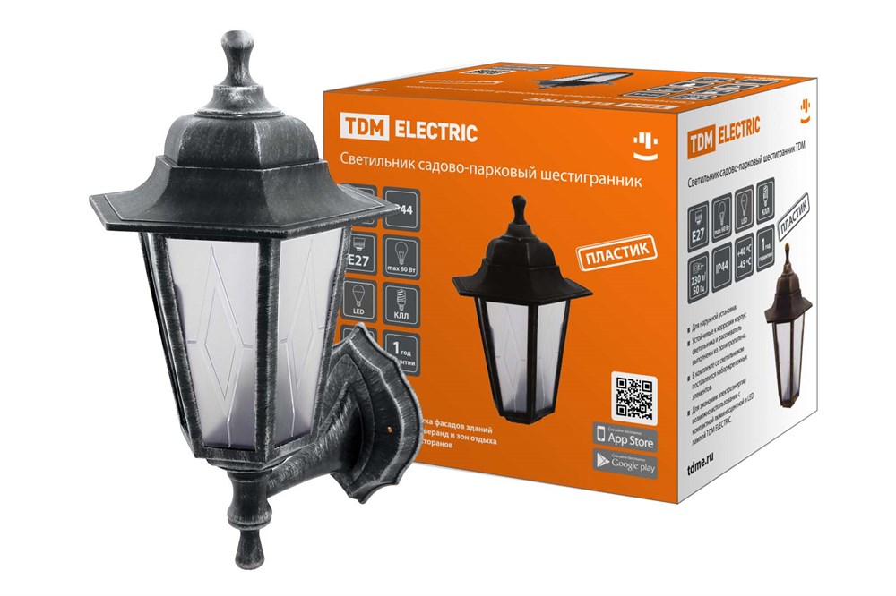 TDM Светильник садово-парковый НБУ 06-60-001 шестигранник, настенный, пластик, расс.пластик, серебро SQ0330-0791