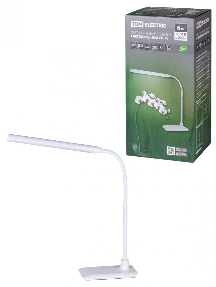 TDM Светильник светодиодный настольный СН-28, 6 Вт, сенсор-диммер, 5000 К, 220 В, белый SQ0337-0094