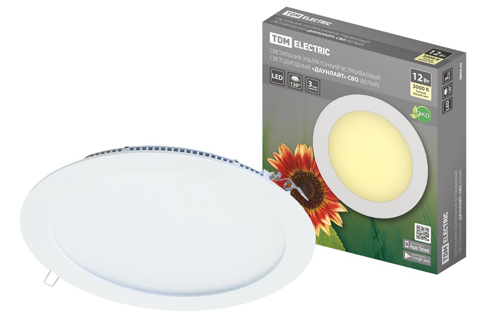 TDM Светильник ультратонкий встраиваемый светодиодный "Даунлайт" СВО (белый) 12 Вт 3000К SQ0329-0012