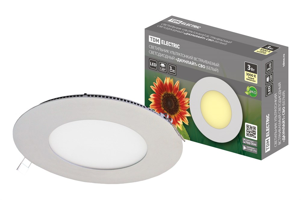 TDM Светильник ультратонкий встраиваемый светодиодный "Даунлайт" СВО (белый) 3 Вт 3000К SQ0329-0108