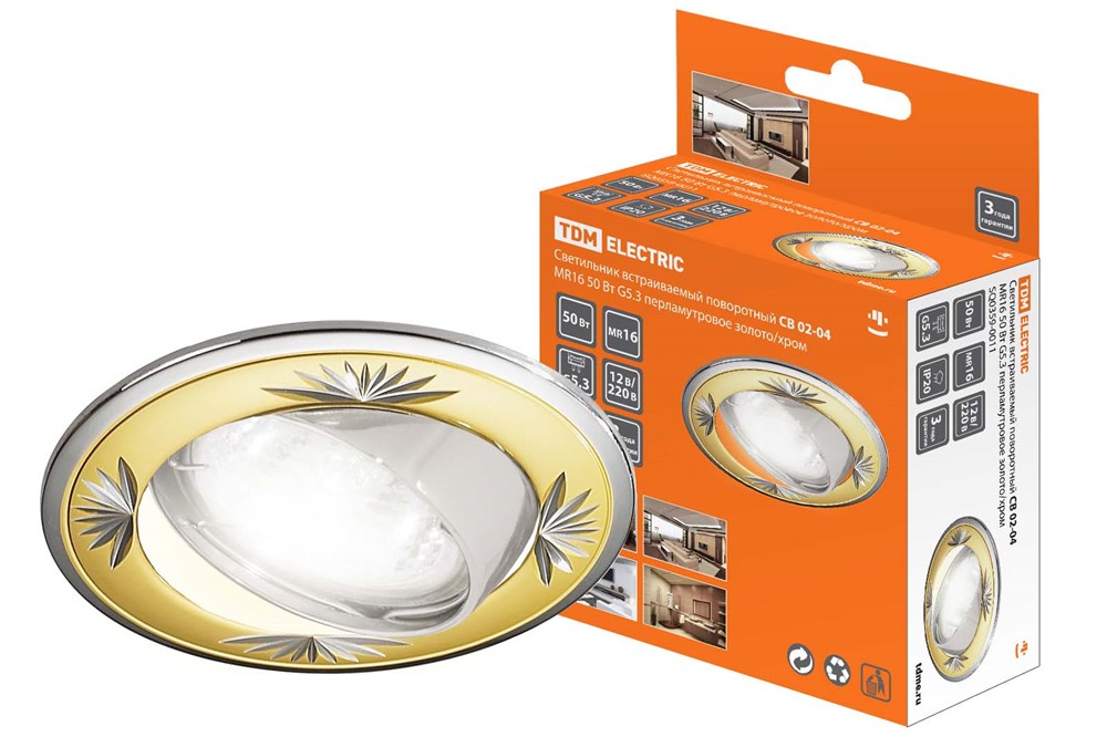 TDM Светильник встраиваемый поворотный СВ 02-04 MR16 50Вт G5.3 перламутровое золото/хром SQ0359-0011