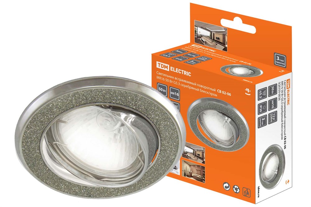 TDM Светильник встраиваемый поворотный СВ 02-06 MR16 50Вт G5.3 серебряный блеск/хром SQ0359-0036