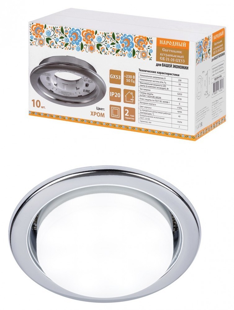 TDM Светильник встраиваемый СВ 01-08 GX53 220 В 50 Гц, хром, 10 шт/уп, Народный SQ0359-0106