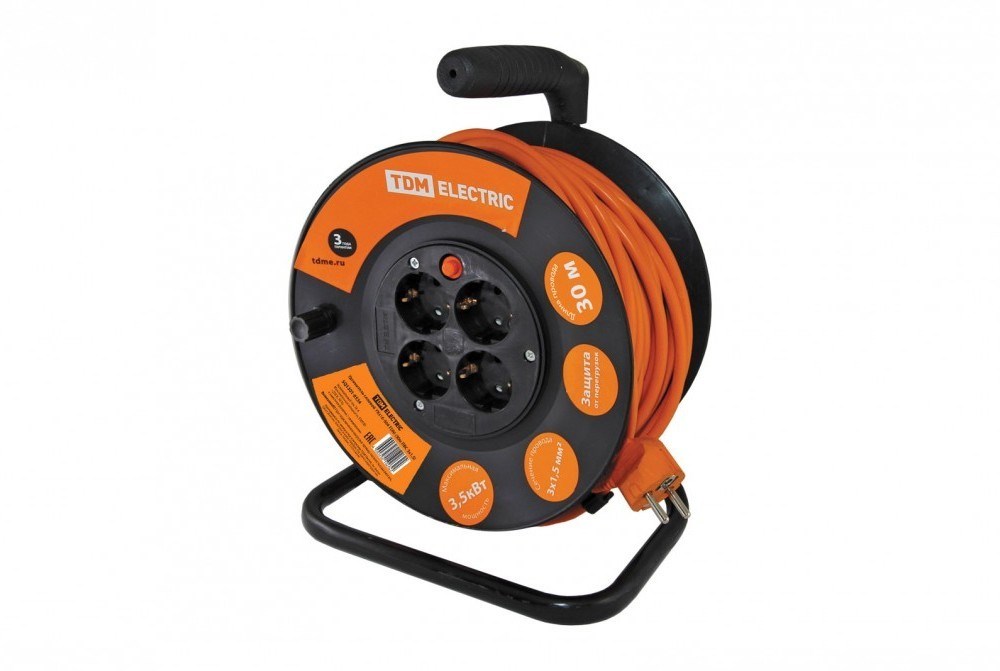 TDM Удлинитель силовой на катушке УКз16-004 (4 места/30м ПВС 3х1,5) SQ1301-0534